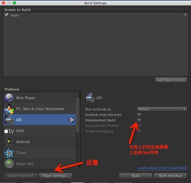 摘要:Unity下载地址Unity破解地址本文Unity版本:5.3.6f1Unity5.0以下版本打包出来的工程结构和Unity5.0以上版本是有区别的,后续会更新Unity4.6版本升级到Unity5.3版本的文章Unity5.3.6版本打包出来的iOS工程是ARC的。Unity4.6版本打包出来的iOS工程是MRC,所以注意混编。1、Command+Shift+B调出BuildSettings界面如下图1.png2、选中DevelopmentBulid以后打包出来的游戏进入游