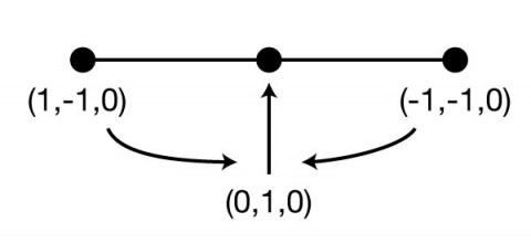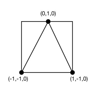 如果考虑 Z = 0 平面,则 (-1, -1, 0) 为左下角,(0, 0, 0) 为中心,(1, 1, 0) 为右上角。在本教程中,想要绘制一个具有以下三个点的三角形: