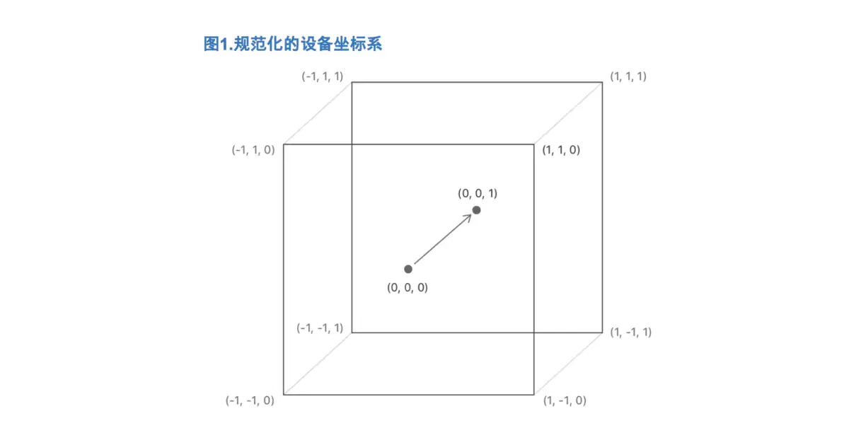 在 Metal 中,默认坐标系是标准化坐标系,这意味着默认情况下看到的是一个以 (0, 0, 0.5) 为中心的 2x2x1 立方体。