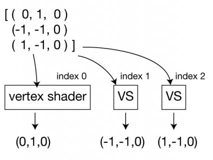 顶点着色器只是一个在 GPU 上运行的小程序,用称为Metal Shading Language的类 C++ 语言编写。