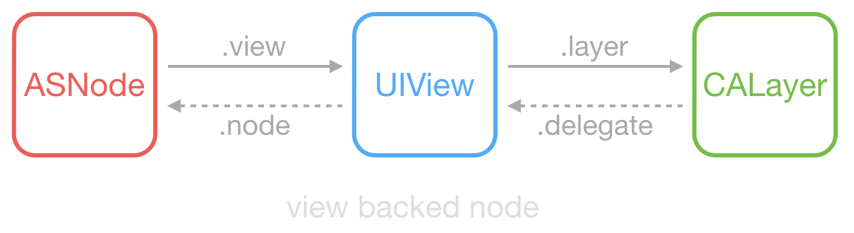 ASDK 为此创建了 ASDisplayNode 类,包装了常见的视图属性(比如 frame/bounds/alpha/transform/backgroundColor/superNode/subNodes 等),然后它用 UIView->CALayer 相同的方式,实现了 ASNode->UIView 这样一个关系。