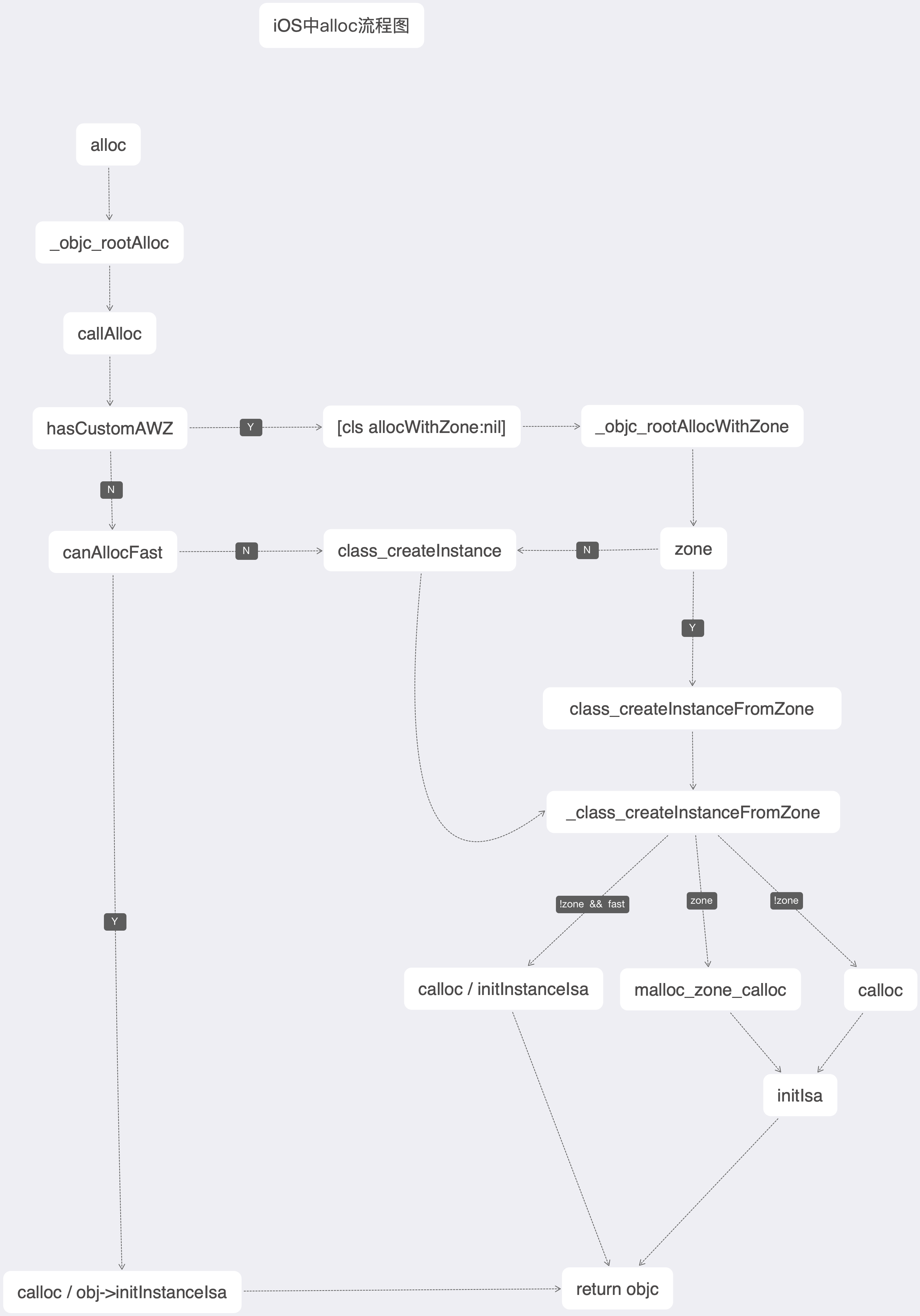 继续会走到calloc->initInstanceIsa,最后返回。 这里的calloc需要编译另一个工程区查看,initInstanceIsa是初始化一些参数。 最后附上一张整体流程图