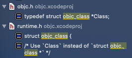这说明,Class其实就是objc_class结构体的指针 继续查找,可以发现objc_clss的声明: